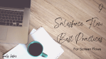 Today we’re bringing you Carissa’s best practices for screen flows, continued from last week’s Best Practices for All Flow Types… Scroll down for the details, or click the links below to jump right to the best practice: Formatting Text Customize Buttons Use Data Tables Provide Helpful Error Messages Launch Flows with Actions Use Screens andContinue reading “2022 Flow Best Practices, Pt 2: Screen Flows” - Flow Enhancement: Flow Trigger Explorer & Ordering
